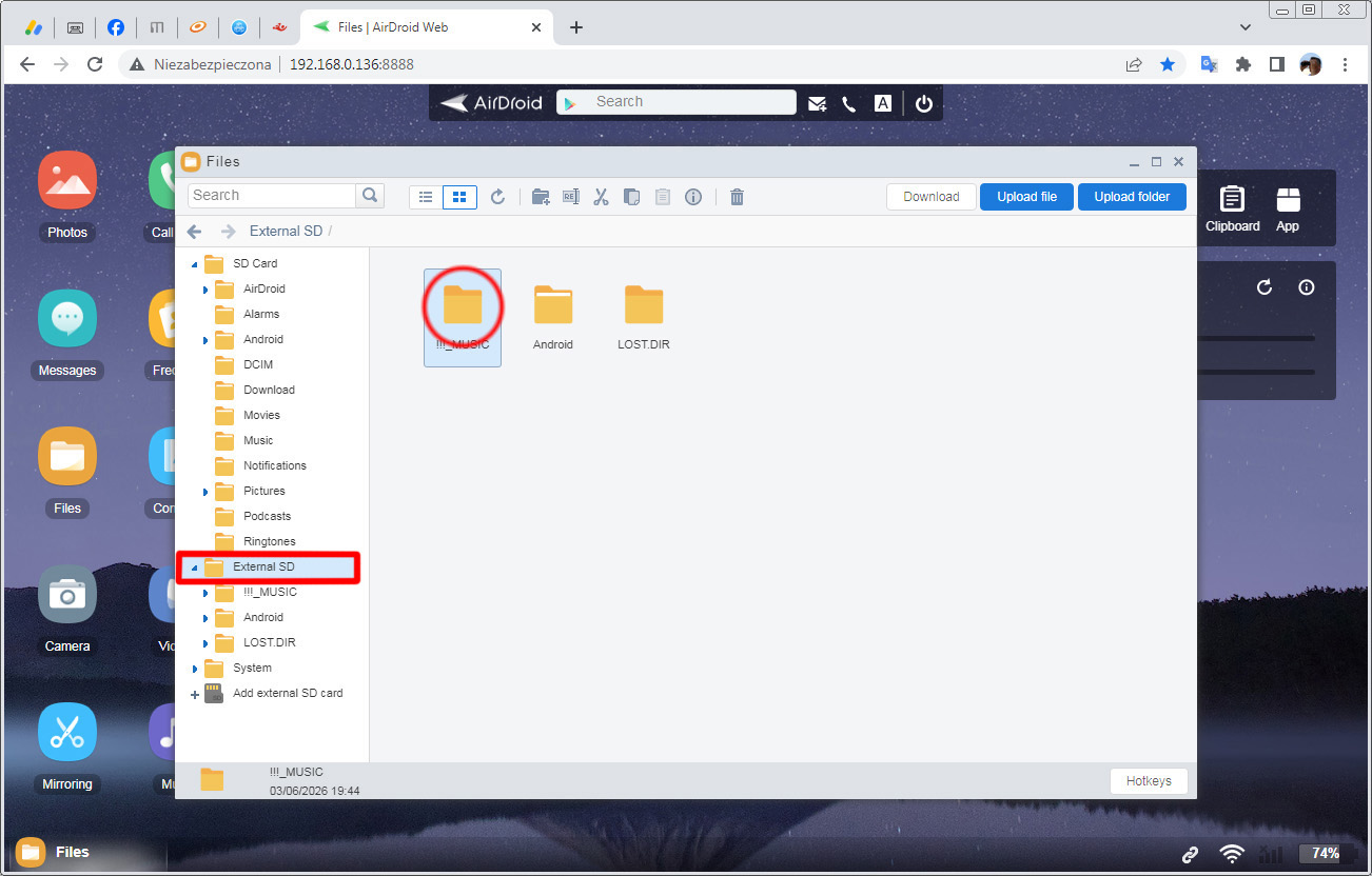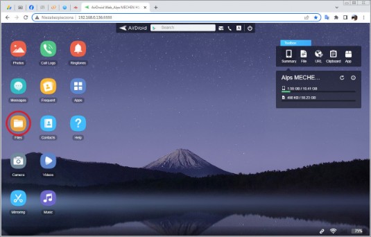 7. Now your web browser will show a webpage generated by AirDroid. It contains lot of useful informations about Tapeless Deck phone, such as available memory or battery status, and other junk that completely does not interest us at this moment.