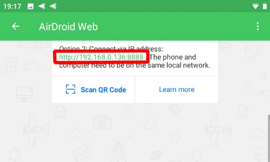 5. Remember, DO NOT rewrite the address from this tutorial - use exact address actually provided by AirDroid.
